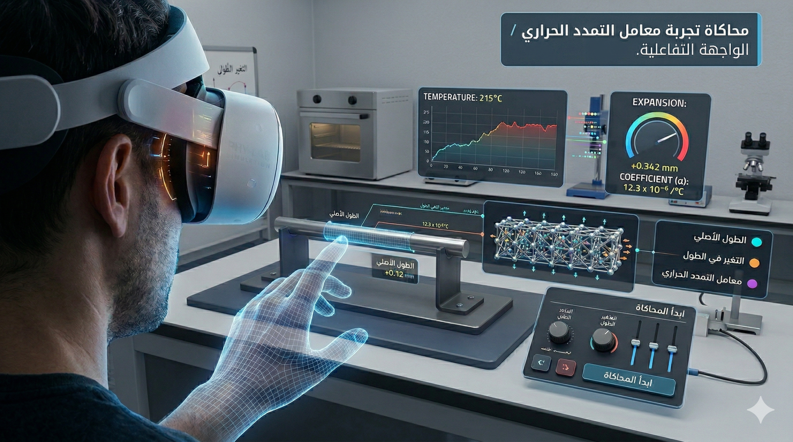 تُعد هذه التجربة من التطبيقات الأساسية في الديناميكا الحرارية، حيث تتيح للطلاب والباحثين فهم كيفية استجابة المعادن المختلفة (مثل النحاس، الألمنيوم، والحديد) للتغيرات في درجات الحرارة. عبر هذه المحاكاة التفاعلية، يمكنكم التحكم في نوع المادة، ضبط الطول الأصلي ودرجة الحرارة الابتدائية، ومن ثم مراقبة قراءة الميكرومتر الدقيقة للتغير في الطول