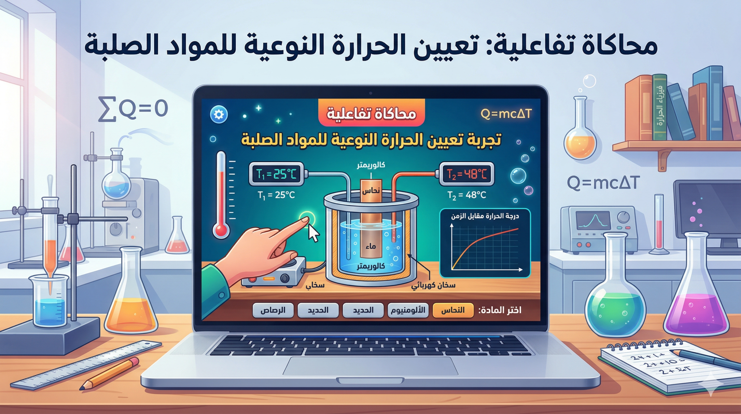 محاكاة تفاعلية: تجربة تعيين الحرارة النوعية للمواد الصلبة