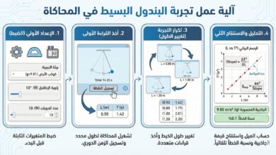 اداة تفاعلية لإجراء تجربة البندول البسيط، تمكنك من قياس الزمن الدوري بدقة، ورسم العلاقة البيانية بين (L) و (T^2) وحساب…