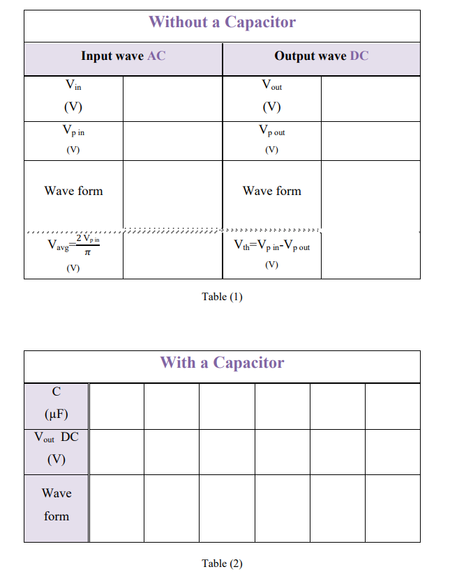 3- Determine the DC output voltage (Vout) of the rectifier circuit by DC Voltmeter.