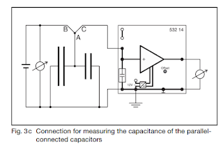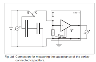 Series connection: Application of Eq. (IV) leads to 1 C = 1 240 pF + 1 130 pF = 0.01186 1 pF. From this C = 84.3 pF follows. Measuring result: C = 88 p