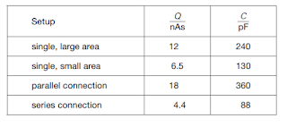 – Discharge the parallel-connected capacitors, then charge them, measure the charge Q, and calculate the capacitance C.